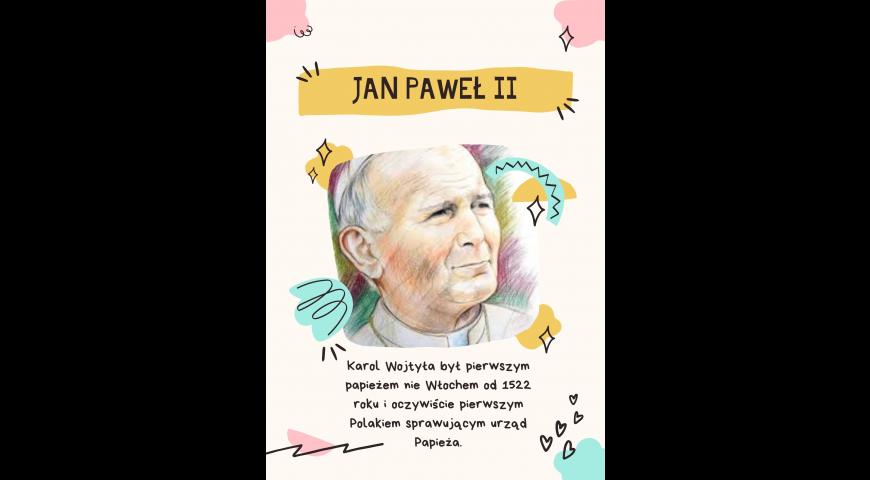 W tym roku obchodzimy 101 rocznicę urodzin świętego papieża- Jana Pawła II. Z tej wyjątkowej okazji Uczniowie naszej szkoły przygotowali plakaty informacyjne, z ciekawostkami o tym wybitnym Polaku. Zapraszamy do lektury!