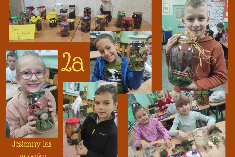 W ramach projektu "Klasa w terenie" uczniowie 2a stworzyli jesienny las w słoiku.