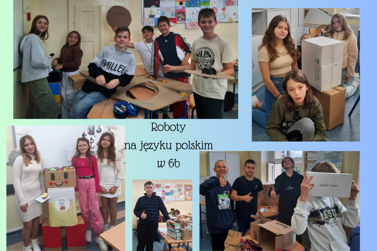 Uczniowie klasy VIb wykonywali na lekcjach języka polskiego roboty. Inspiracją do ich pracy była lektura pt: ,,Felix, Net i Nika oraz Gang Niewidzialnych Ludzi".