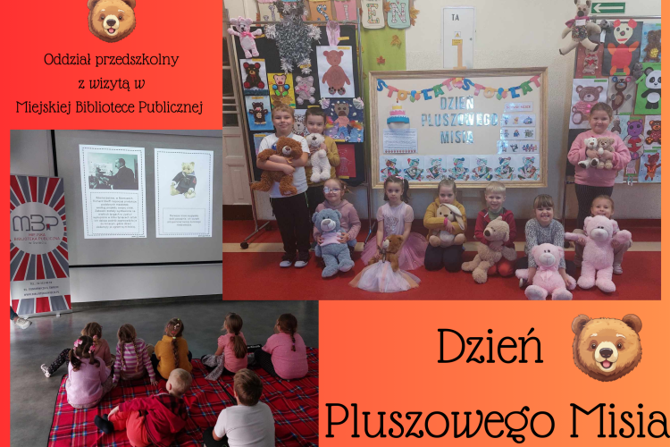 Dzieci z oddziału przedszkolnego wybrały się do Miejskiej Biblioteki Publicznej z okazji Światowego Dnia Pluszowego Misia.
