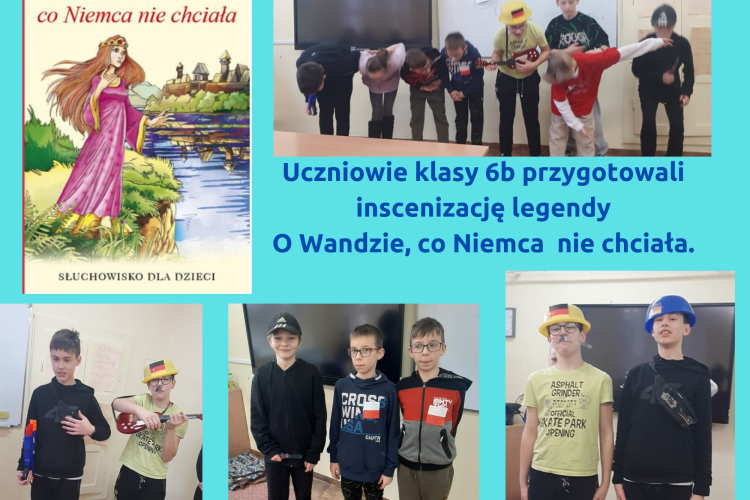 Uczniowie klasy 6b przygotowali inscenizację legendy O Wandzie, co Niemca nie chciała. Scenariusz, reżyserię, scenki, rekwizyty i stroje przygotowali również uczniowie.