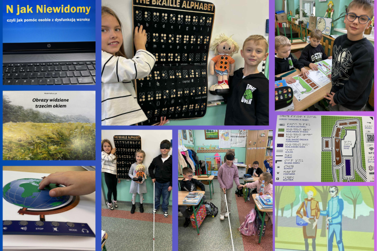 Udział w zajęciach z okazji Międzynarodowego Dnia Białej Laski - ,,Ja nie widzę Ciebie, Ty zobacz mnie" na których poruszona była tematyka potrzeb i możliwości osób, które nie widzą lub widzą słabo.