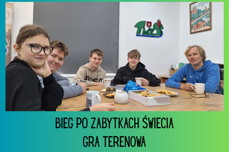 Po kilku latach przerwy TMZS wróciło do gry terenowej - Bieg po zabytkach Świecia. Głównym jej celem jest popularyzacja walorów turystycznych naszego regionu i wiedzy historycznej o naszym mieście. W tym roku udział wzięli uczniowie klasy 8b: Julia, Tymon, Sasza i Hubert. Opiekunem był pan Sebastian Loba.