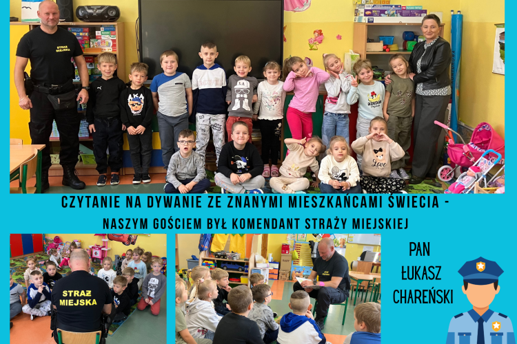 Kolejne spotkanie dzieci z oddziału przedszkolnego ze znanymi mieszkańcami naszego miasta. Tym razem gościem specjalnym był komendant Straży Miejskiej pan Łukasz Chareński. Serdecznie dziękujemy za przybycie.
