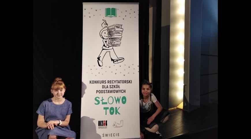22 maja w Ośrodku Kultury Sportu i Rekreacji odbył się konkurs recytatorski "Słowo Tok". Naszą szkołę reprezentowały Emilka Pilińska z kl. IVE oraz Zuzia Borek z kl. VIB. W konkursie wzięło udział 47 uczniów szkół podstawowych. Po części konkursowej odbyła się część warsztatowa, którą poprowadziła przewodnicząca jury- Iga Jambor-Skupniewicz. Grand Prix zdobyła Antonina Piechna z SP nr 8 w Świeciu. Wszystkim uczestnikom gratulujemy.