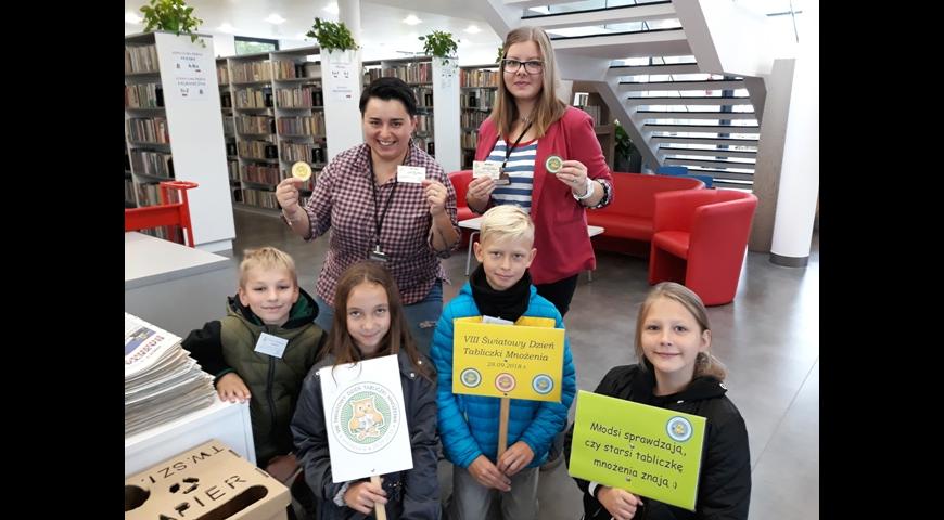 28 września 2018r. obchodziliśmy w naszej szkole VIII Światowy Dzień Tabliczki Mnożenia. Uczennice klasy 6a i klasy 6b przeprowadziły testy ze znajomości tabliczki mnożenia w klasach od IV do VIII. Bezbłędnie na wszystkie pytania odpowiedziało 182 egzaminowanych uczniów, uzyskując tym samym tytuł Eksperta Tabliczki Mnożenia. Uczniowie ci otrzymali pamiątkowe certyfikaty potwierdzające ich umiejętności. Egzamin z tabliczki mnożenia nie ominął także dorosłych. Podczas przerw dziewczynki z klasy 6b przepytywały z tabliczki mnożenia nauczycieli, pracowników szkoły oraz rodziców. Odpowiadali śpiewająco. Natomiast uczniowie z klasy 5c pod opieką wychowawcy odpytywali z tabliczki mnożenia mieszkańców Świecia. Nasz patrol egzaminacyjny odwiedził między innymi przedszkole , OKSiR, Bibliotekę Miejską oraz Urząd Miasta. Wszystkim Ekspertom Tabliczki Mnożenia serdecznie gratulujemy!
