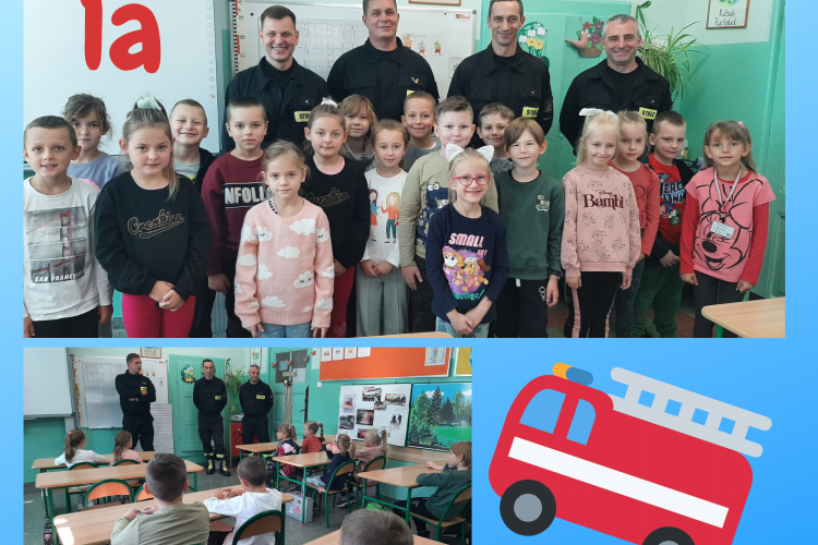 W piątek uczniowie klasy 1A spotkali się ze strażakami. Odbyła się pogadanka na temat pracy strażaka, numerów alarmowych oraz ewakuacji.