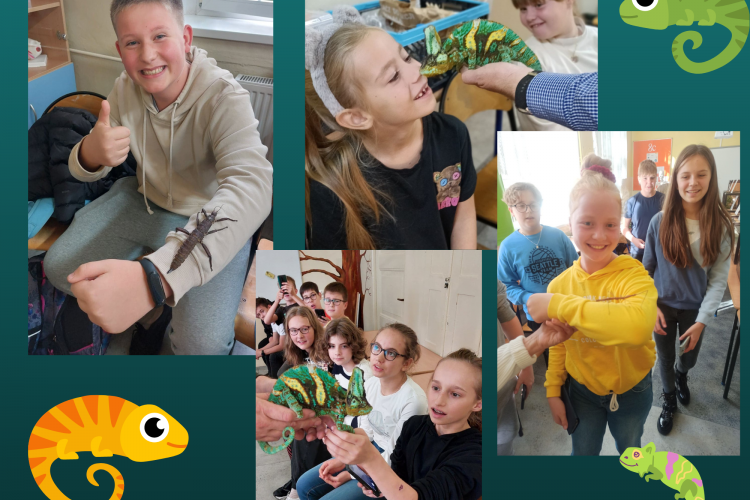Z okazji Światowego Tygodnia Zwierząt do naszej szkoły przyjechał p. Jarosław Rejmer – badacz i miłośnik fauny tropikalnej. Przywiózł ze sobą pajęczaki, owady i gady. Z wielkim zainteresowaniem uczniowie słuchali informacji o życiu tych zwierząt. Emocje budziły kameleony, gekony, modliszki, pająki i skorpiony, które uczniowie mogli zobaczyć z bliska, a niekiedy i dotknąć. Była to niesamowita żywa lekcja biologii, która długo pozostanie w pamięci nas wszystkich.