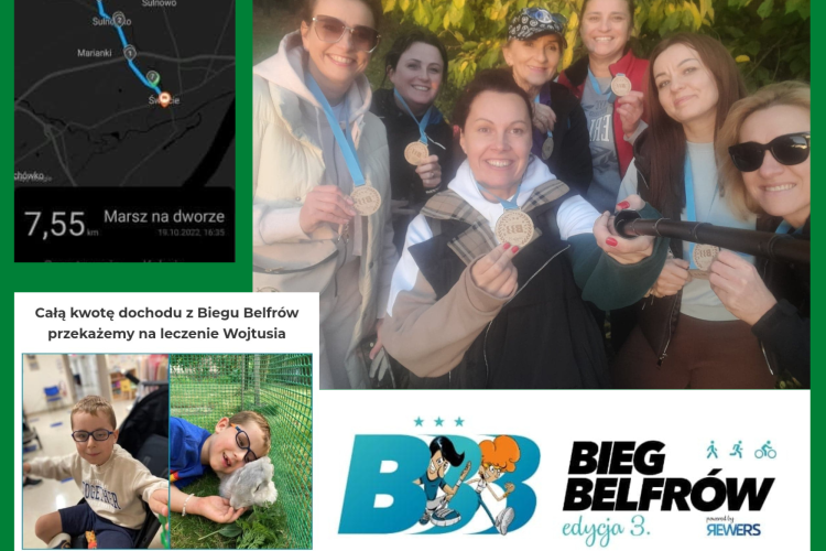 Podobnie jak w roku ubiegłym rezprezentacja naszej szkoły (łącznie 11 osób) wzięła udział w III edycji Biegu Belfrów - charytatywnym ogólnopolskim wydarzeniu sportowym dla pracowników oświaty. W tym roku zebrane środki przeznaczone są na leczenie 6-letniego Wojtusia, który od 4 lat walczy z potworną chorobą – siatkówczakiem obuocznym – nowotworem złośliwym, który zabrał mu już jedno oczko.