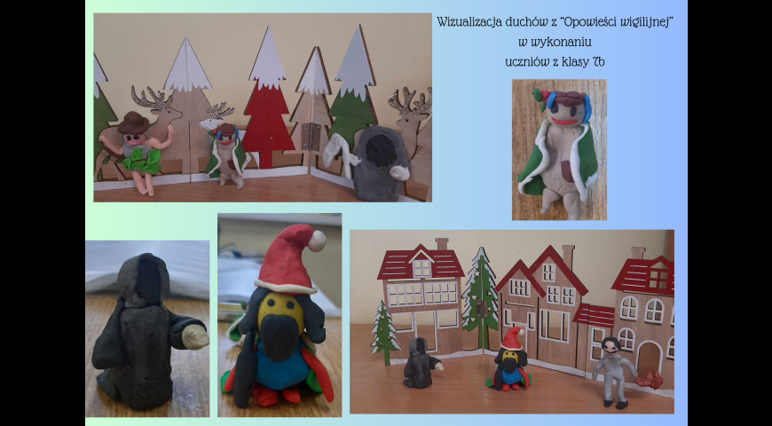 Wizualizacja duchów z "Opowieści wigilijnej" w wykonaniu klasy 7b / Data publikacji: 08.01.24 / Dodane przez Magda Pogoda - 08.01.24