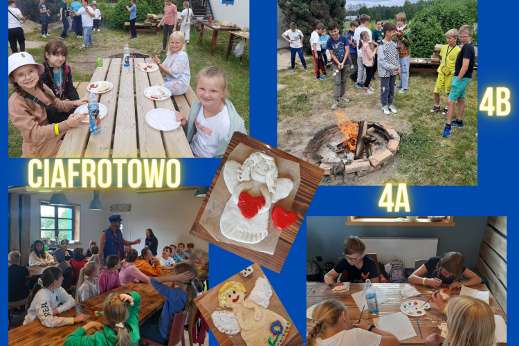 Wycieczka klas czwartych do kociewskiej osady Ciafrotowo we wsi Średnia Huta. W programie były anielskie warsztaty, gra terenowa w lesie Banda kota Ciafrota.