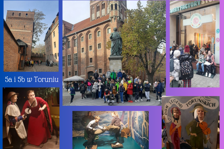 Dnia 10 listopada klasy 5a i 5b udały się na wycieczkę do Torunia. Pierwszym punktem wyprawy był Dom Legend Toruńskich, w którym uczniowie wzięli udział w interaktywnym przedstawieniu, przybliżającym legendy oraz historię kopernikańskiego miasta. Następnie udali się na spacer do Krzywej Wieży, mijając po drodze dom Kopernika, kościół, w którym został ochrzczony. A pod pomnikiem astronoma wykonano pamiątkowe zdjęcie. Po spożyciu ciepłego posiłku i zaopatrzeniu się w słodycze, uczniowie udali się do Planetarium, by obejrzeć niezwykły seans "Oto jest kosmos".