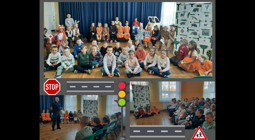 Bezpieczni w drodze do szkoły / Data publikacji: 06.10.22 / Dodane przez Magda Pogoda - 06.10.22 Udział klasy 1A, 3A i 3B w przedstawieniu pt: "Bezpieczni w drodze do szkoły".