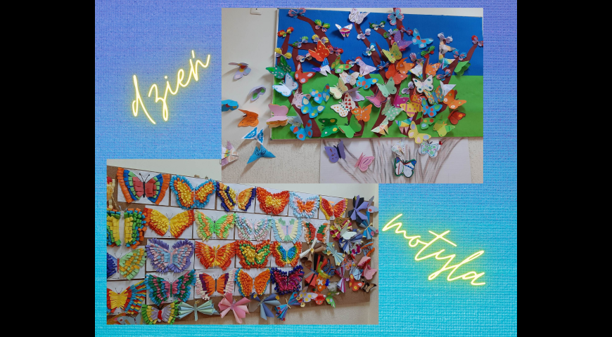 Prace plastyczne wykonane przez uczniów klas I-VII z okazji Dnia Motyla.