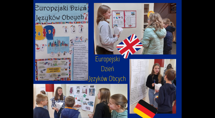 W czwartek w naszej szkole obchodziliśmy Europejski Dzień Języków Obcych. Nasz szkolny korytarz ozdobiły plakaty wypełnione zagadkami, zadaniami, krzyżówkami, które sami wykonaliście dla swoich kolegów i koleżanek. Każdy w tym dniu miał możliwość w formie zabawy zmierzyć się ze swoją wiedzą, poćwiczyć lub też pogłębić nowe zagadnienia. Wszystkim bardzo dziękujemy za udział w zabawie i mamy nadzieję, że ten dzień spędziliście miło i efektywnie.