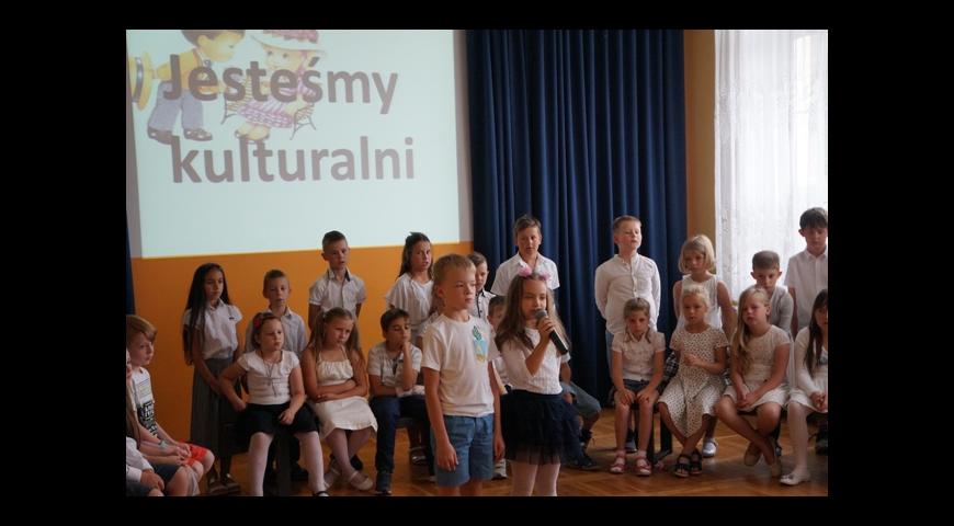 Dnia 12 czerwca 2018 roku, w nawiązaniu do wyborów Miss i Mistera Uprzejmości, uczniowie klasy 1b i 3c wraz z wychowawcami, Anną Podsiębierską i Aleksandrą Szczepańską, zaprezentowali dla wszystkich uczniów klas 0-III przedstawienie pt.”Jesteśmy kulturalni”, które przybliżyło uczniom zasady grzeczności i dobrego zachowania. Dzieci pięknie recytowały wiersze, śpiewały piosenki i przedstawiały scenki. Uczniowie z zainteresowaniem oglądali, co ich koledzy i koleżanki prezentowali na szkolnej scenie.