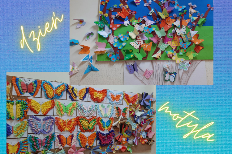 Prace plastyczne wykonane przez uczniów klas I-VII z okazji Dnia Motyla.