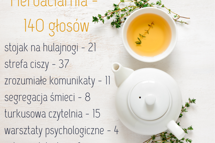Podczas święta szkoły odbyło się głosowanie na SBO, czyli Szkolny Budżet Obywatelski. Uczniowie głosowali na projekty, które zostały napisane przez ósmoklasistów na lekcji WOS-u. Największą liczbę głosów uzyskała HERBACIARNIA.