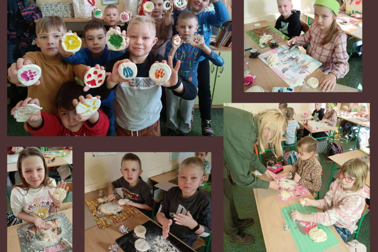 Uczniowie klasy IIB wzięli udział w zajęciach zakończonych warsztatami prowadzonymi przez pracownika Wdeckiego Parku Krajobrazowego pt: Tropy zwierząt - wykonujemy stemple z masy solnej.