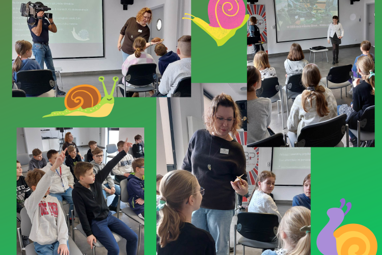 Klasa 4a udała się na żywą lekcję biologii o ślimaku, który zamieszkuje Miejską Bibliotekę w Świeciu.
