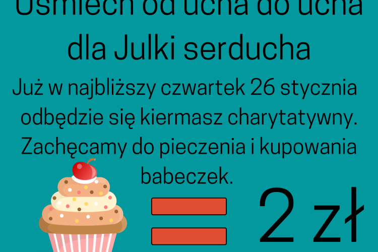 26 stycznia odbył się kiermasz charytatywny pod hasłem ,,Uśmiech od ucha do ucha dla Julki serducha". Zbieraliśmy środki na operację, która ma być przeprowadzona w Bostonie i pozwoli wrócić Julce do zdowia. Dzięki Państwa zaangażowaniu zebraliśmy 2072zł. Serdecznie dziękujemy i zachęcamy do śledzenia aukcji internetowych prowadzonych na Facebooku.