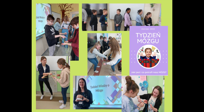 Od 14 do 18 marca mózg, jego budowa i możliwości były tematem przewodnim we wszystkich edukacyjnych obszarach w naszej szkole. W ramach lekcji biologii uczniowie wysłuchali wykładu o tym niezwykłym narządzie, a potem włączyli się do zabaw, w których musieli wykazać się kreatywnością. Sprawdzili również jak działa ludzki mózg. Wierzymy, że uczestnictwo w tym wydarzeniu było dla uczniów okazją do zdobycia nowej wiedzy i doświadczenia.