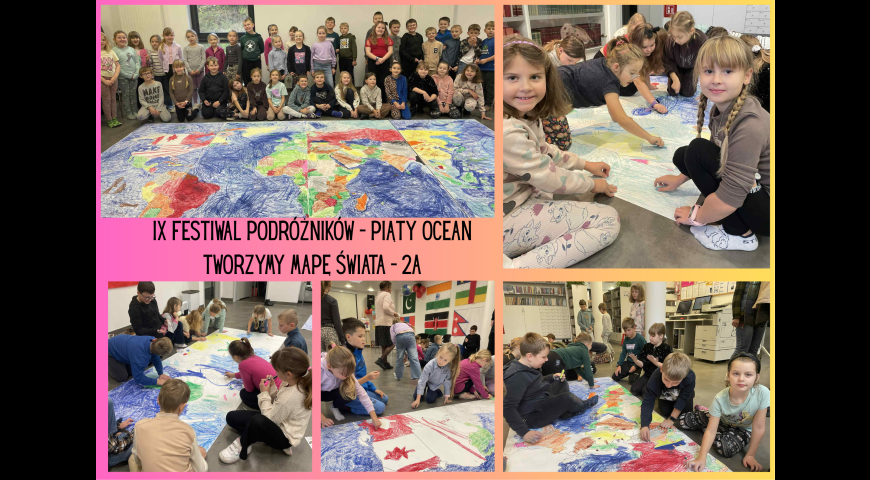 2a - Zajęcia warsztatowe, tworzymy mapę świata / Data publikacji: 14.11.25 / Dodane przez Magda Pogoda - 14.11.25 Zajęcia warsztatowe w ramach IX Festiwalu Podróżników ,,Piąty Ocean" - tworzymy mapę świata.