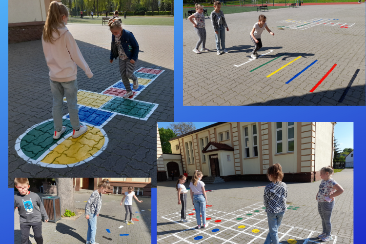 Piękna pogoda zainspirowała do stworzenia na szkolnym boisku gier w rozmiarze XXL. Jest wesoło, kolorowo i zdrowo:) KOCHAMY GRY, a nudzie mówimy NIE.