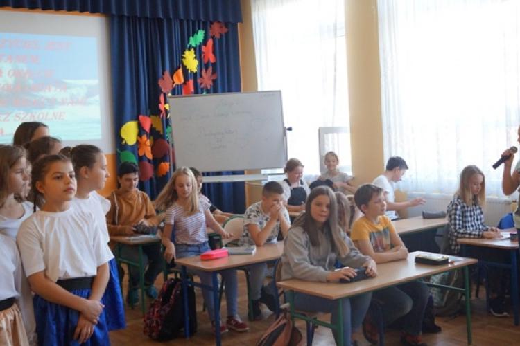Z okazji Europejskiego Dnia Języków uczniowie z klasy 5b, 5d, 8a i 8c przygotowali przedstawienie, w którym zaprezentowali po angielsku nową historię Czerwonego Kapturka „The new story of Red Riding Hood”, skecz po niemiecku – „Jak to w szkole było”( „Wie war es in der Schule“) i „Panie Janie rano wstań“ („Fere Żake“, „Are you sleeping Brother John“ i „Bruder Jacob“ ) w trzech językach – francuskim, angielskim i niemieckim. UCZCIE SIĘ JĘZYKÓW OBCYCH