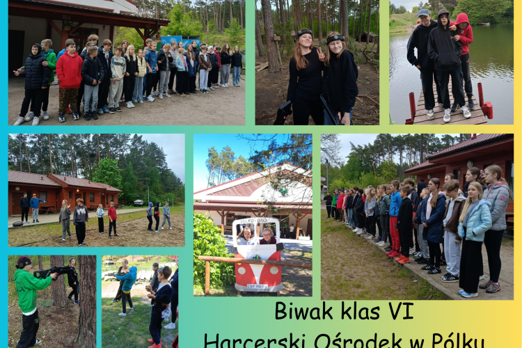 W dniach 19-20 maja klasy szóste udały się na biwak do Obozowego Ośrodka Harcerskiego w Pólku. Całemu pobytowi towarzyszyła moc atrakcji. Uczniowie mieli okazję zbudować szałasy, bawić się w podchody, nabyli umiejętność niekonwencjonalnego rozpalania ognia. Największą atrakcją okazał się laserowy Paintball. Wyciszeniu służył wieczór filmowy z paką popcornu. Zmęczeni, ale zadowoleni biwakowicze wrócili do domów, planując kolejny biwak.