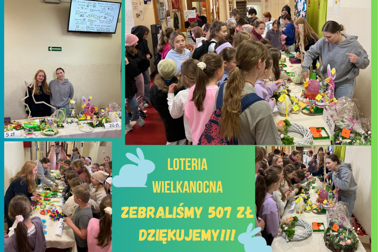 W dniu dzisiejszym odbyła się Wielkanocna Loteria Charytatywna. Można było zakupić ozdoby wielkanocne przygotowane przez naszych uczniów. Wspólnie zebraliśmy 507zł. Pieniądze przeznaczone zostaną na wsparcie piesków z naszego schroniska. Dziękujemy za zaangażowanie.
