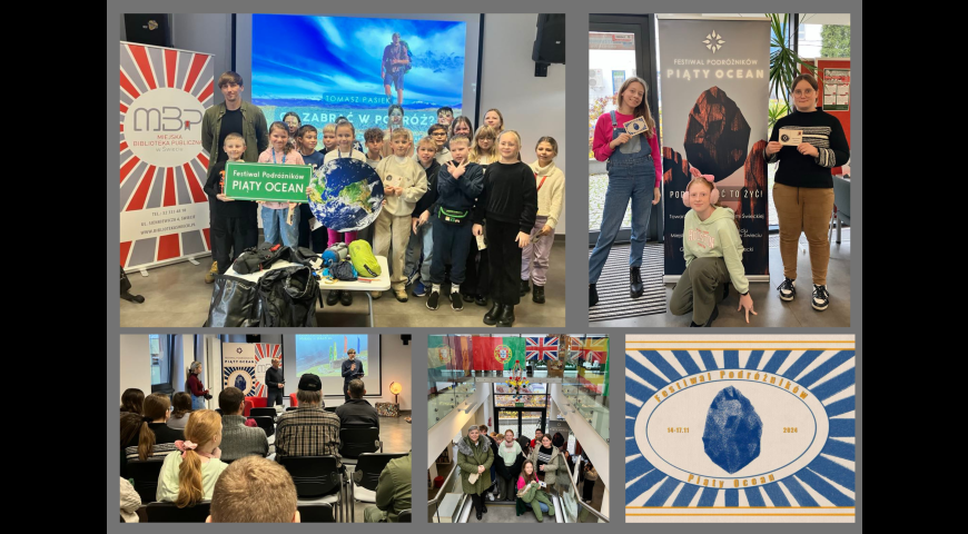 14 i 15 listopada mieliśmy okazję uczestniczyć w VIII edycji Festiwalu Podróżników ,,Piąty Ocean". Klasa 7a wzięła udział w prelekcji jaką wygłosił pan Lech Flaczyński na temat Makalu, natomiast klasa 4b podczas warsztatów dowiedziała się ,,Co zabrać w podróż". Dziękujemy organizatorom za zaproszenie i już czekamy na kolejny festiwal.