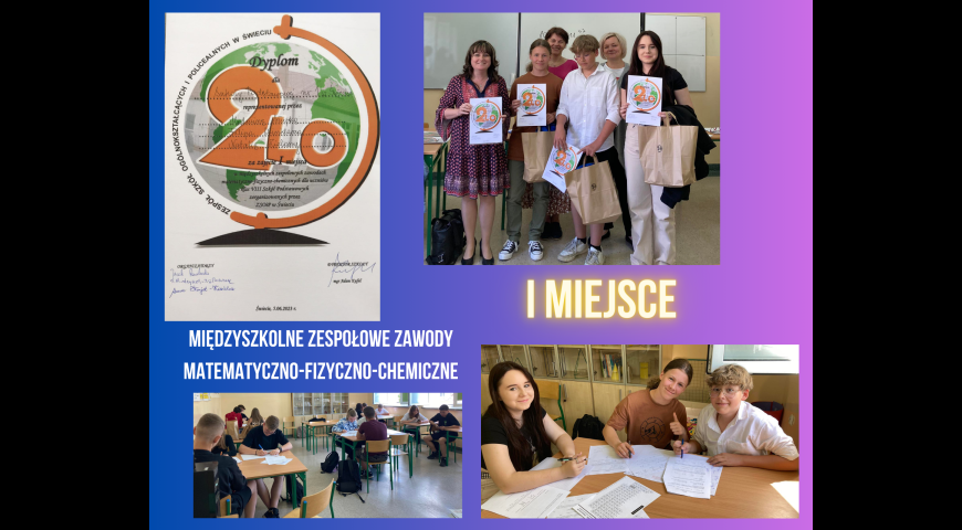 I miejsce w międzyszkolnych zespołowych zawodach matematyczno-fizyczno-chemicznych Dodane przez Magda Pogoda - 05.06.23