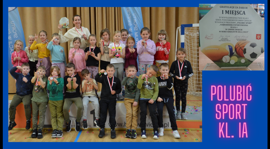 IA - najbardziej usportowiona klasa / Data publikacji: 28.04.23 / Dodane przez Magda Pogoda - 28.04.23 Klasa IA zajęła I miejsce w współzawodnictwie klas I szkół podstawowych gminy Świecie w ramach programu ,,Polubić sport". Serdecznie gratulujemy!!!