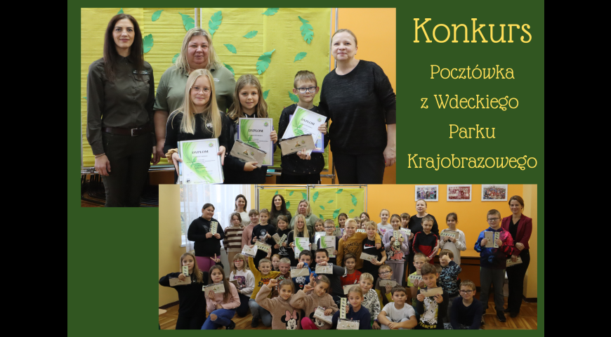 20 października rozstrzygnięty został konkurs "Pocztówka z Wdeckiego Parku Krajobrazowego - z biegiem Wdy" organizowany z okazji Jubileuszu 30-lecia Wdeckiego Parku Krajobrazowego. Miło nam poinformować, że wśród laureatów znaleźli się uczniowie naszej szkoły. W kategorii wiekowej 6-9 lat I miejsce zajęła Nadia Sakowicz z klasy 3b, III miejsce zajęła Natalia Kanicka z klasy 3b oraz Nikodem Mikołajczak z klasy 3a. Gratulujemy!!!