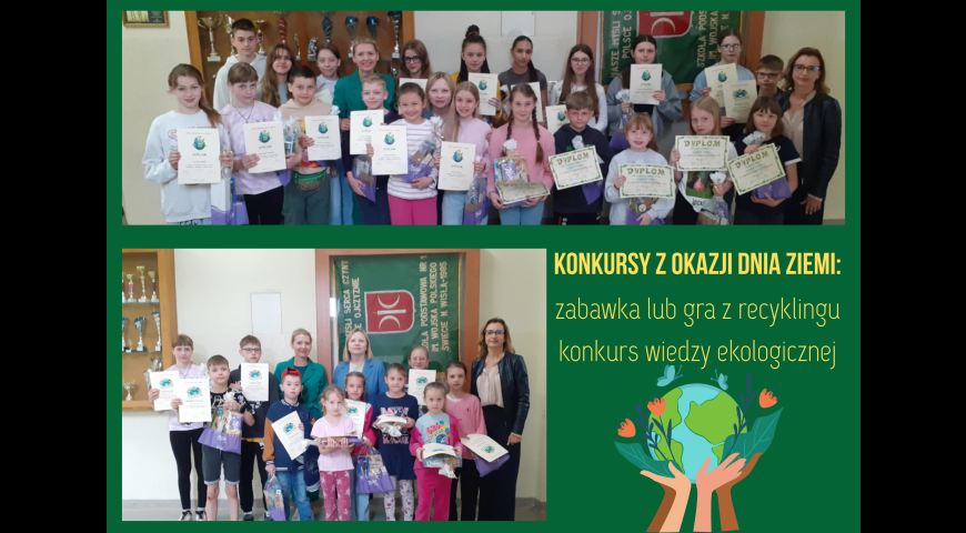 Z okazji Dnia Ziemi uczniowie naszej szkoły wzięli udział w szkolnych konkursach ekologicznych.