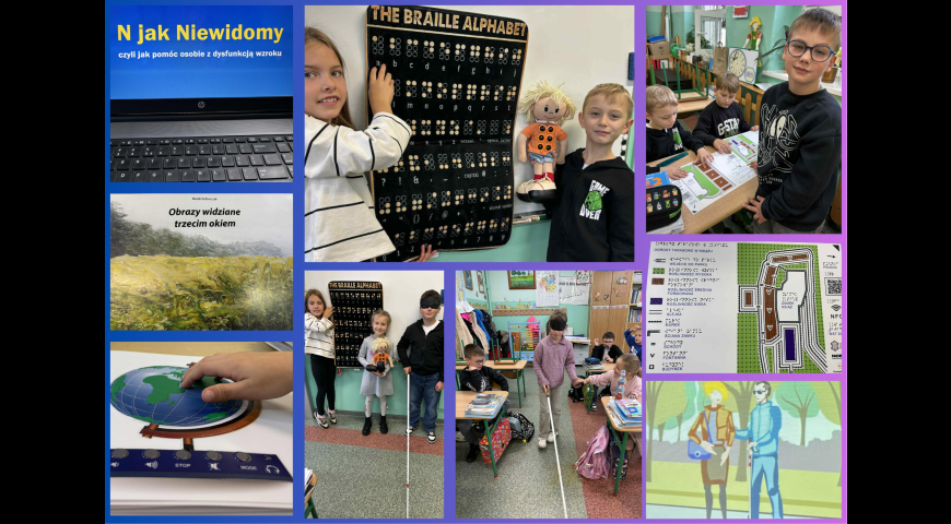Udział w zajęciach z okazji Międzynarodowego Dnia Białej Laski - ,,Ja nie widzę Ciebie, Ty zobacz mnie" na których poruszona była tematyka potrzeb i możliwości osób, które nie widzą lub widzą słabo.