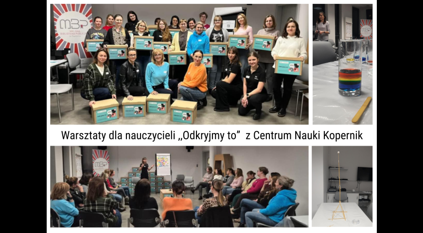 Warsztaty ,,Odkryjmy to" z Centrum Nauki Kopernik / Data publikacji: 28.02.25 / Dodane przez Magda Pogoda - 28.02.25 Szkolimy się dla Was. Nauczyciele z naszej szkoły brali udział w warsztatach ,,Odkryjmy to" eksperymentując z Centrum Nauki Kopernik.